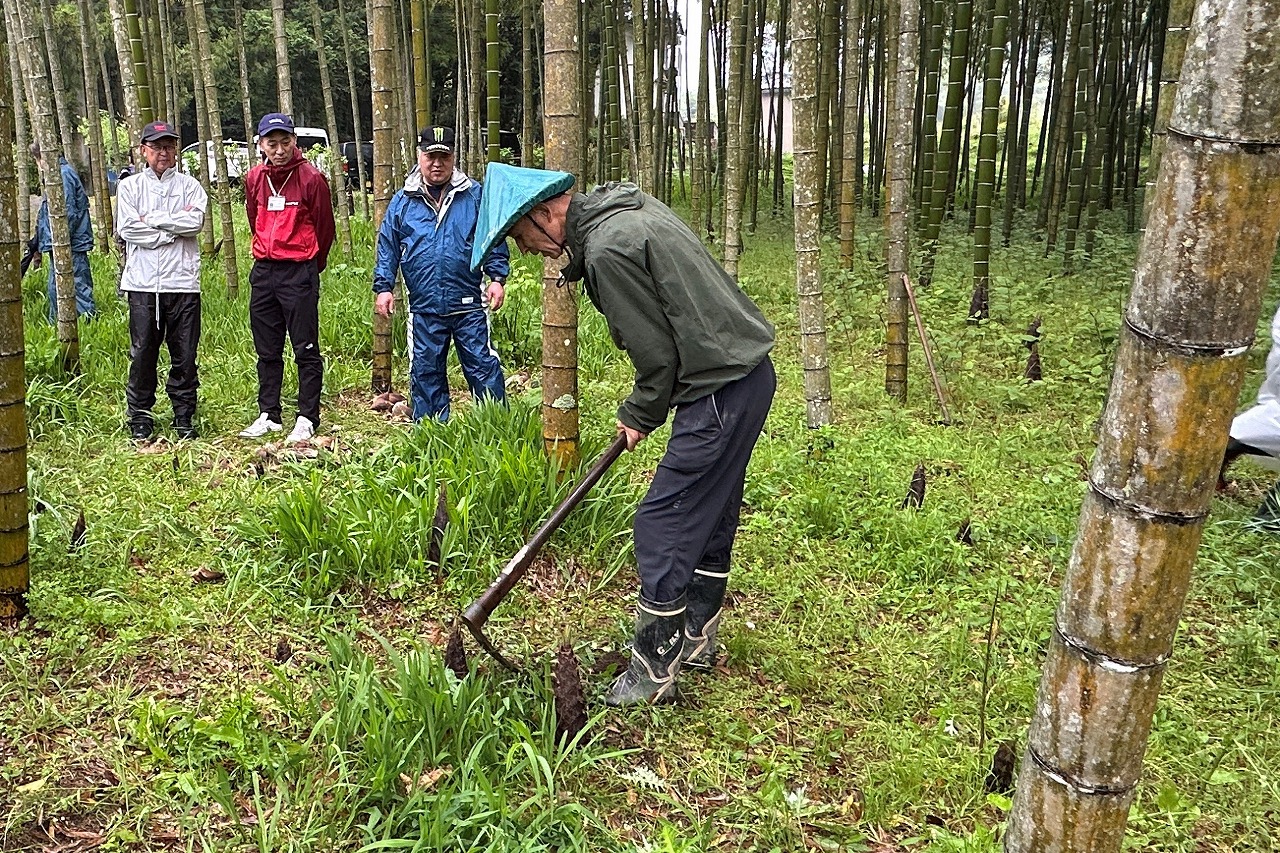 久重地域の竹林で春の里山の息吹を感じながらタケノコ掘り体験事業が実施されました。